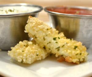 “Unfried” Baked Mozzarella Sticks – crunchy & gooey cheesy goodness without the guilt. Yay for healthy snacking! | www.craftycookingmama.com