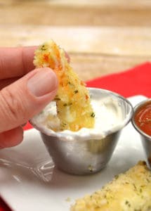 “Unfried” Baked Mozzarella Sticks – crunchy & gooey cheesy goodness without the guilt. Yay for healthy snacking! | www.craftycookingmama.com